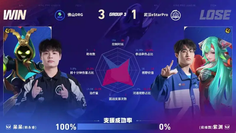 虎扑01月17日讯 DRG/ES第四局数据图:梦岚公孙离零死亡且多项数据拉满