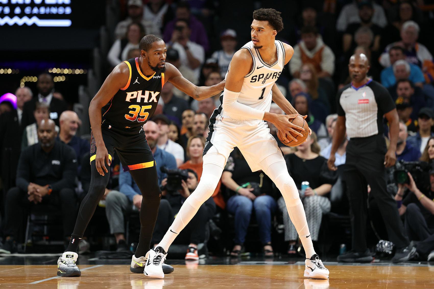 他说:“根据我现在的所有对话和信息,太阳队关于杜兰特的交易讨论主要集中在迈阿密、休斯敦和明尼苏达。据我所知,马刺目前并没有积极追求杜兰特。杜兰特的首选下家有三个:马刺、火箭和热火,但这三支球队中,马刺的兴趣程度……我是说,毕竟是杜兰特,谁会没兴趣呢?但考虑到他们的建队时间表,以及得到杜兰特可能需要的资产,他们和热火、火箭不在一个节奏上。休斯敦今年打进了季后赛首轮,有经验丰富的教练乌度卡,他们觉得引进杜兰特就能争冠……我认为马刺可能在囤积资产,为更大的交易或更适合他们时间表的球员做准备。”